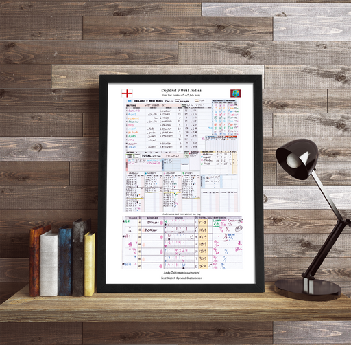 'Jimmy's Last Wicket' A print of Andy Zaltzman's original scorecard from the First Test between England and West Indies at Lord's, London on July 1...