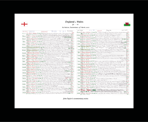 The Sports CommentatorsA framed print of John Taylor's original commentary notes from the Six Nations match between England and Wales at Twickenham on May 23, 2002. Avai...