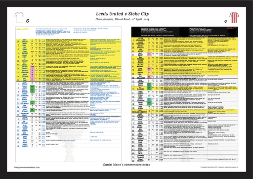 The Sports CommentatorsA print of Daniel Mann's original commentary notes on the Championship match between Leeds United and Stoke City at Elland Road on April 21, 2025. ...