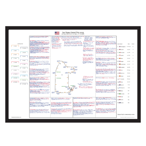A print of David Croft’s original commentary notes from the Las Vegas Grand Prix at the0 Las Vegas Strip Circuit on November 22, 2025 The drivers' ...