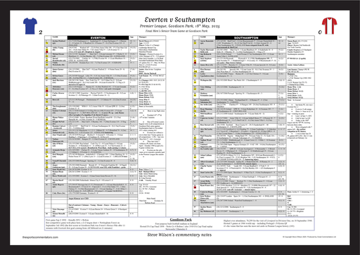 The Sports CommentatorsA print of Steve Wilson's original commentary notes on the Premier League match between Everton and Southampton at Goodison Park on May 18, 2025. W...