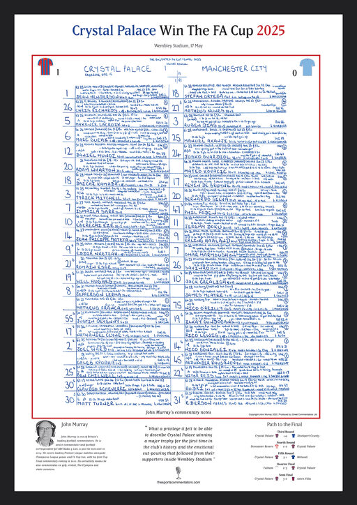 A print of John Murray's original commentary notes on the FA Cup Final match between Crystal Palace and Manchester City at Wembley Stadium on May 1...