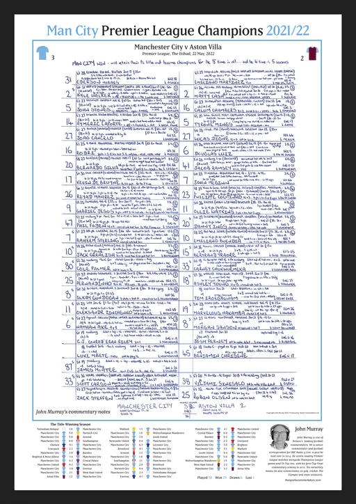 The Sports CommentatorsA print of John Murray’s original commentary notes from the Premier League match between Manchester City and Manchester United at the Etihad Stadiu...