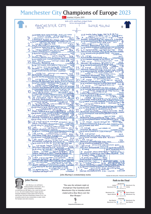 The Sports CommentatorsA print of John Murray’s original commentary notes from the Champions League Final match between Manchester City and Inter Milan at the Ataturk Oly...