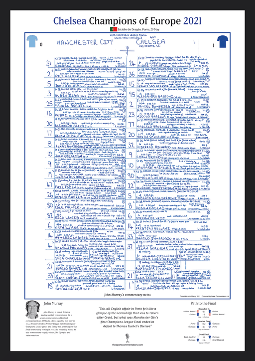 The Sports CommentatorsA framed print of John Murrays' original commentary notes from this Champions League Final match between Manchester City and Chelsea at Estádio do ...