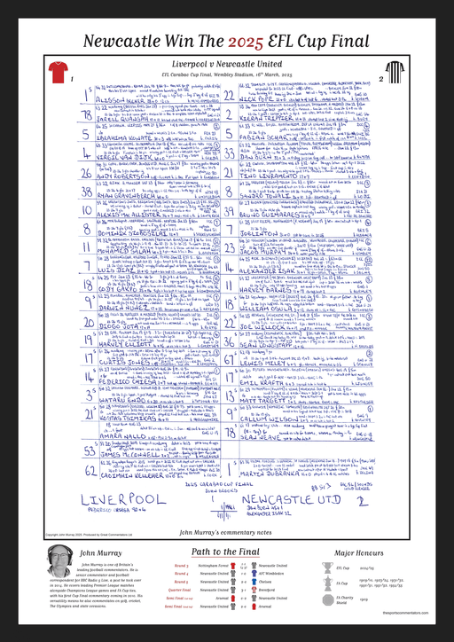 The Sports CommentatorsA special edition. print of John Murray's original commentary notes from the Carabao Cup Final between Newcastle United and Liverpool at Wembley on...