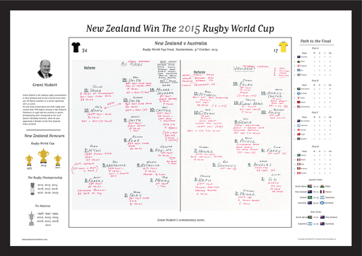 The Sports CommentatorsA high-quality print of Grant Nisbett's authentic commentary notes from the Rugby World Cup Final match between New Zealand and Australia at Twicke...